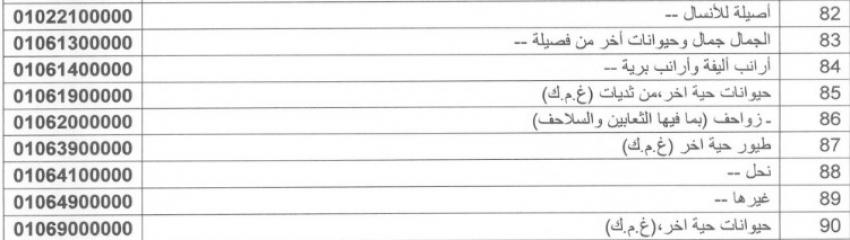 وتشمل القائمة اضافة الى السلاحف والزواحف، الارانب البرية والارانب الاليفة والجمال الحية، والثعابين، والطيور الحية، وحيوانت حية من الثديات، وحيوانت حية اخرى.