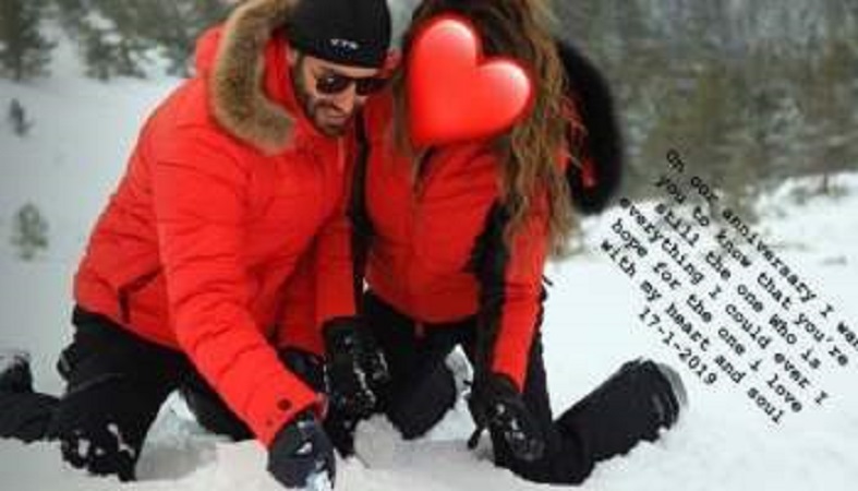 وقام رمضان بإخفاء وجه الفتاة عبر حسابه على "انستا ستوري"، ووضع على الوجه قلباً أحمر اللون، حيث ظهرا سويّاً وهما على الثلج.