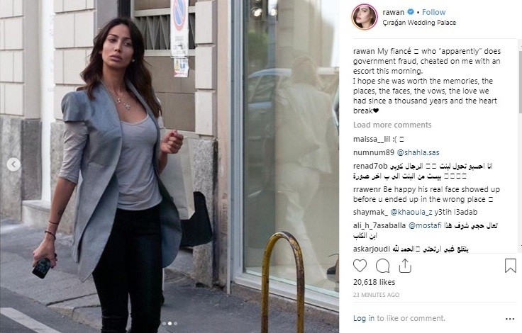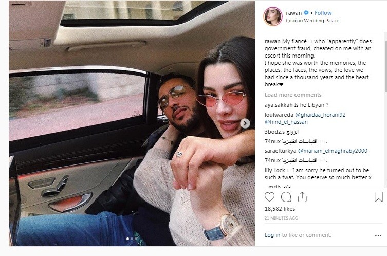 وصدمت روان متابعيها بلأنها مخطوبة، واستغربوا جرأتها في نشر صورهما معاً للمرة الاولى، وكذلك نشرت صورة السيدة التي خانها الشاب معها، في محاولة منها لإهانته وفضح تفاصيل خيانته لها بين الناس، الامر الذي اضطرها ابى حذف المنشور بعد فترة قليلة.