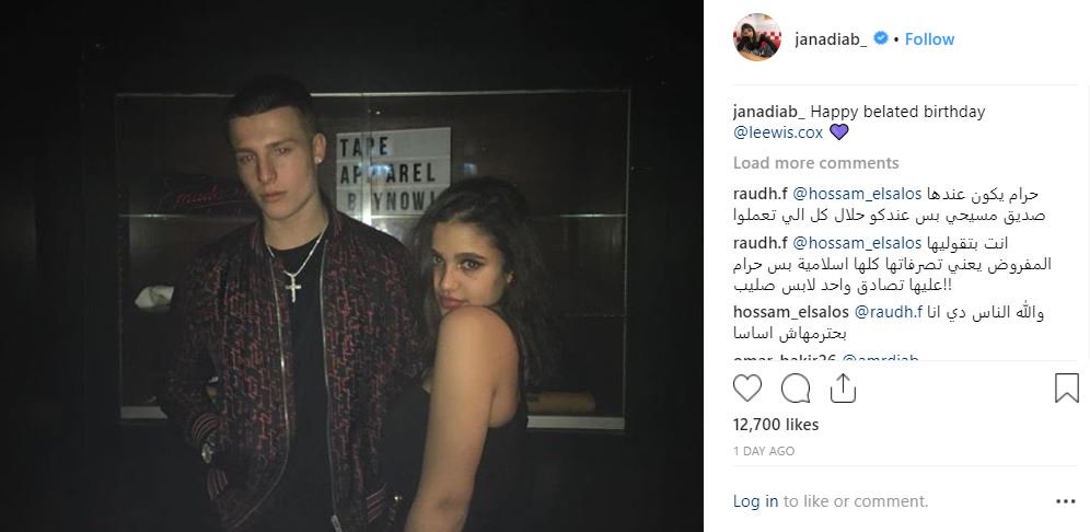 وكانت جنا قد ظهرت في الصورة وهي ترتدي الملابس الجريئة، وإلى جانبها شاب أجنبي، حيث كانا يحتفلان بعيد ميلاده.
