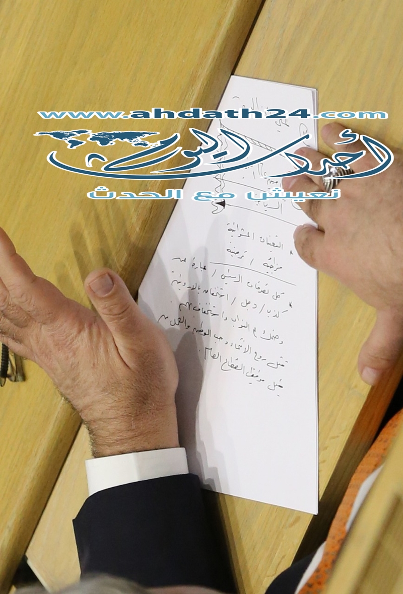 أحداث اليوم - امير خليفة - كتب نائب على ورقة اخفاها على مقعده في مجلس النواب، والتقطت عدسة أحداث اليوم، صورة لها أن رئيس الوزراء الدكتور عمر الرزاز "كاذب ودجال".
