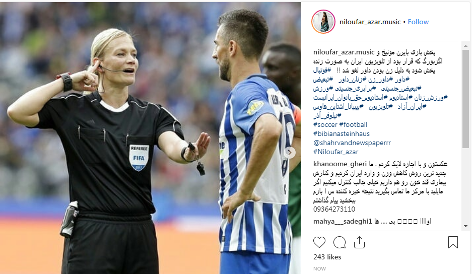 قررت قناة تلفزيونية إيرانية إلغاء نقل مباراة في الدوري الألماني يوم الجمعة بسبب أن اللقاء تقوده الحكمة يبيانا شتاينهاوس.