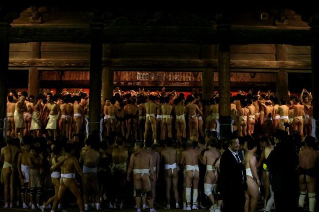 ويعتقد أن ما يربو عن 10 آلاف رجل يرتدون إزارا خفيفا شاركوا في الطقوس بمعبد كينريوزان سايدايجي البوذي.