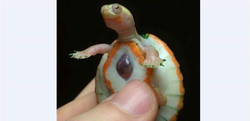 أحداث اليوم - أثارت سلحفاة من فصيلة "ألبينو" حيرة ودهشة الأطباء بسبب الحالة النادرة التي تعاني منها، والتي تتمثّل بوجود قلبها خارج جسدها.