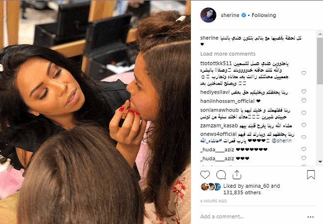نشرت شيرين صورة عبر حسابها على "انستغرام"، وهي تضع الماكياج لإحدى ابنتيها، وعلّقت على الصورة، قائلة: "كل لحظة بقضيها مع بناتي بتكون عندي بالدنيا".
