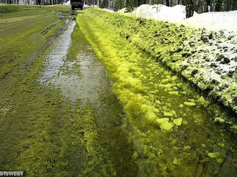 قبل أيام فوجئ سكان بلدة روسية في سيبيريا بثلج أسود يغطي شوارع البلدة، والآن أصاب الذعر سكان مدينة أخرى جراء تعرضها لثلج أخضر سام، الأمر الذي أثار احتجاجات ضد التلوث.