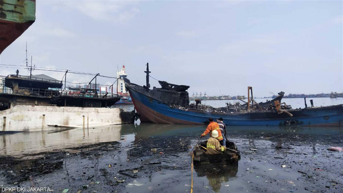 فقد أفادت السلطات الإندونيسية بأنّ رجال الإطفاء كافحوا بشراسة لإطفاء الحريق الهائل الذي نجم عن "شرارة لحام" في الحوض الجاف الصغير، وتسبب بإحراق 20 سفينة صيد على الأقل.
