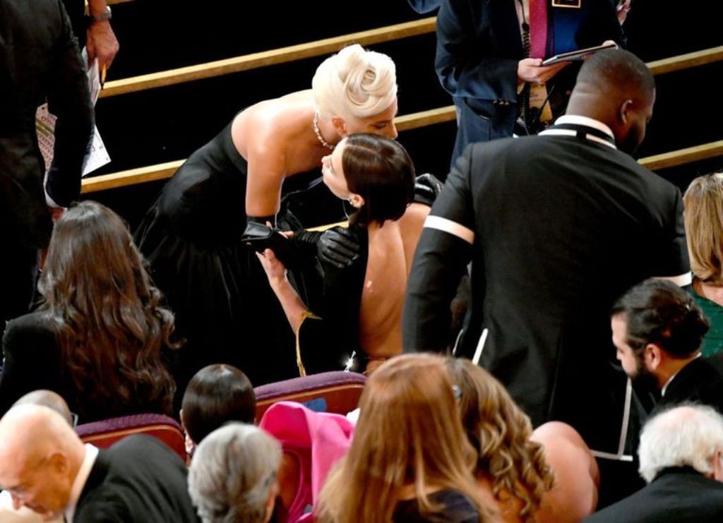 كما التقطت عدسات المصورين صوراً لشايك تعانق غاغا فور عودة الأخيرة إلى مقعدها بعد إلقائها خطابًا مؤثرًا وصفت فيه برادلي بالصديق المقرَّب وأن لا توتر بينها وبين حبيبته، وذلك خلال تسلمها جائزة أفضل أغنية أصلية.