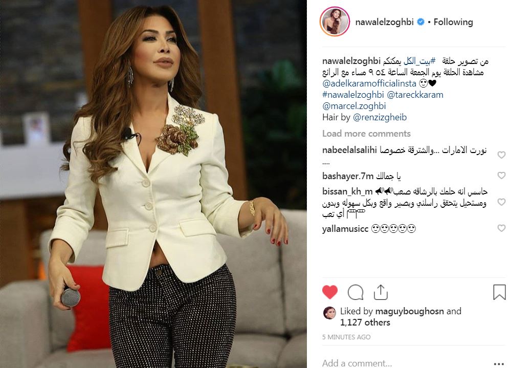 نشرت الفنانة نوال الزغبي صوراً جديدة عبر "انستغرام"، ظهرت فيها بإطلالة بتصميم أنثوي شديد الإتقان، مُعتمدة موضة البطن المكشوف