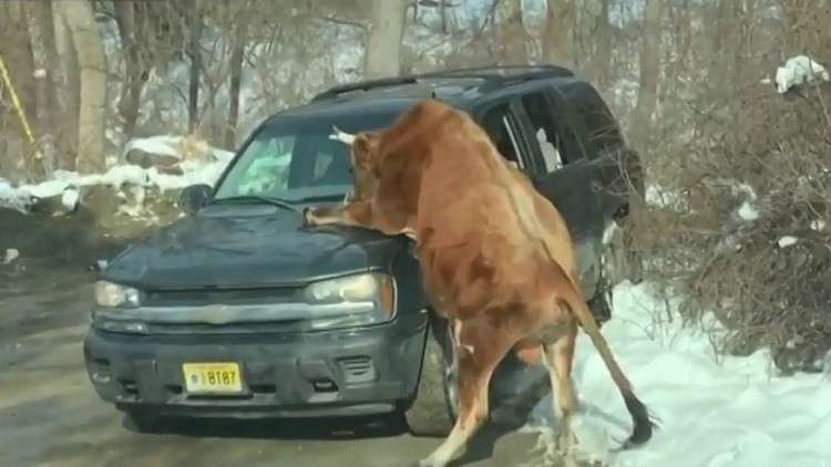 وذكرت قناة "NBC New York" التلفزيونية، أن الحادث وقع، في 8 مارس الجاري، عندما أبلغ شهود عيان الشرطة عن ثور هائج يطارد سيارة امرأة.
