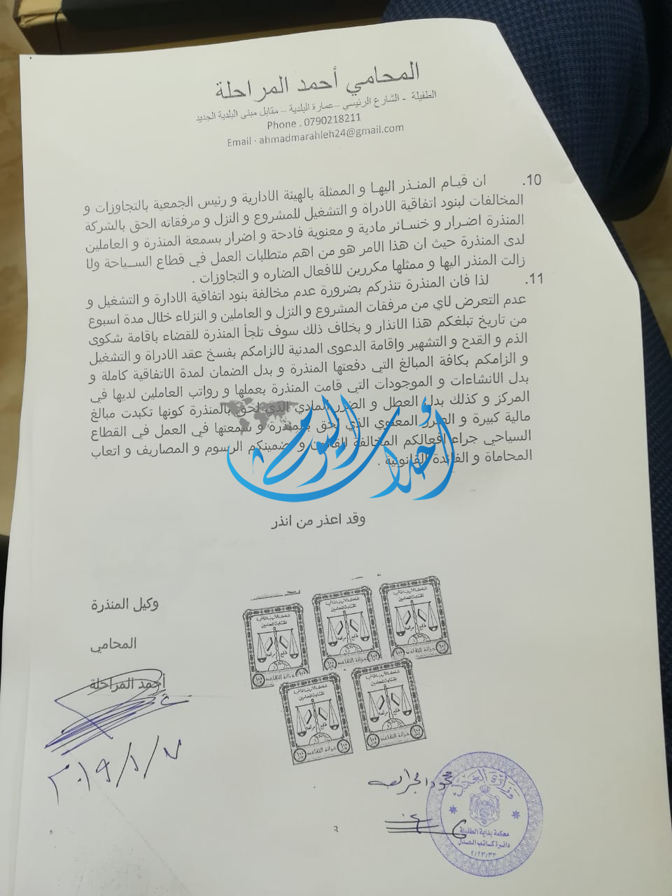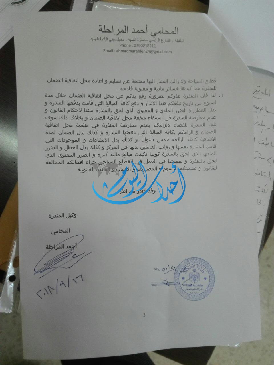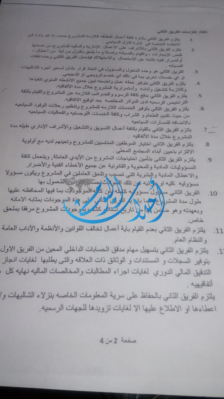 ومن جهة أخرى يحق لنا قانونيا الحصول على تمديد زمني لحين متابعة التسجيل والحصول على الموافقات الرسمية من وزارة السياحة والآثار التي ما زالت تلوح بإغلاق الموقع مع بداية الموسم السياحي عوضاً عن تقديم المساعدة لتسهيل مهمتنا في المساهمه الفاعلة في تشغيل المجتمع المحلي وتطوير سياحيا.