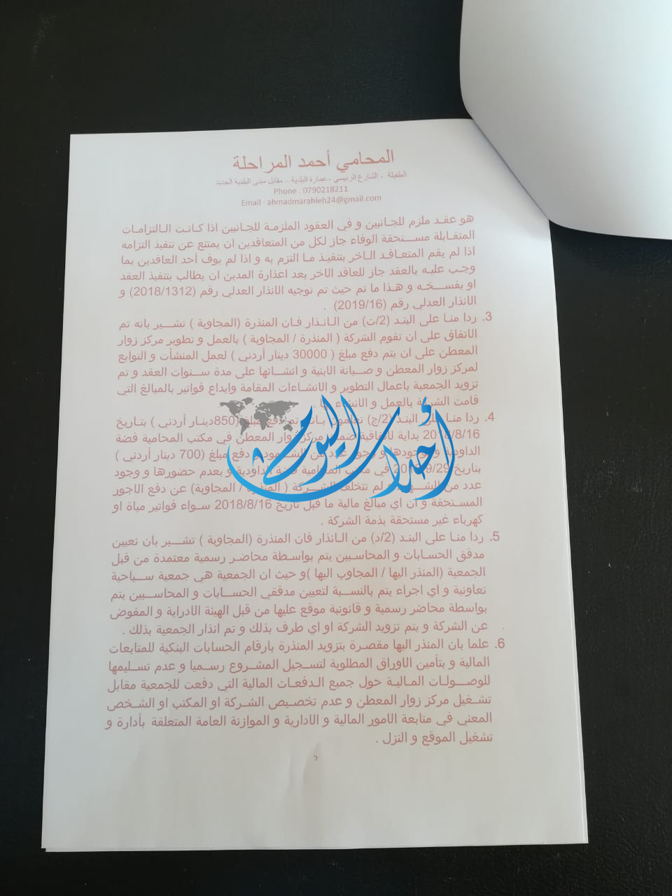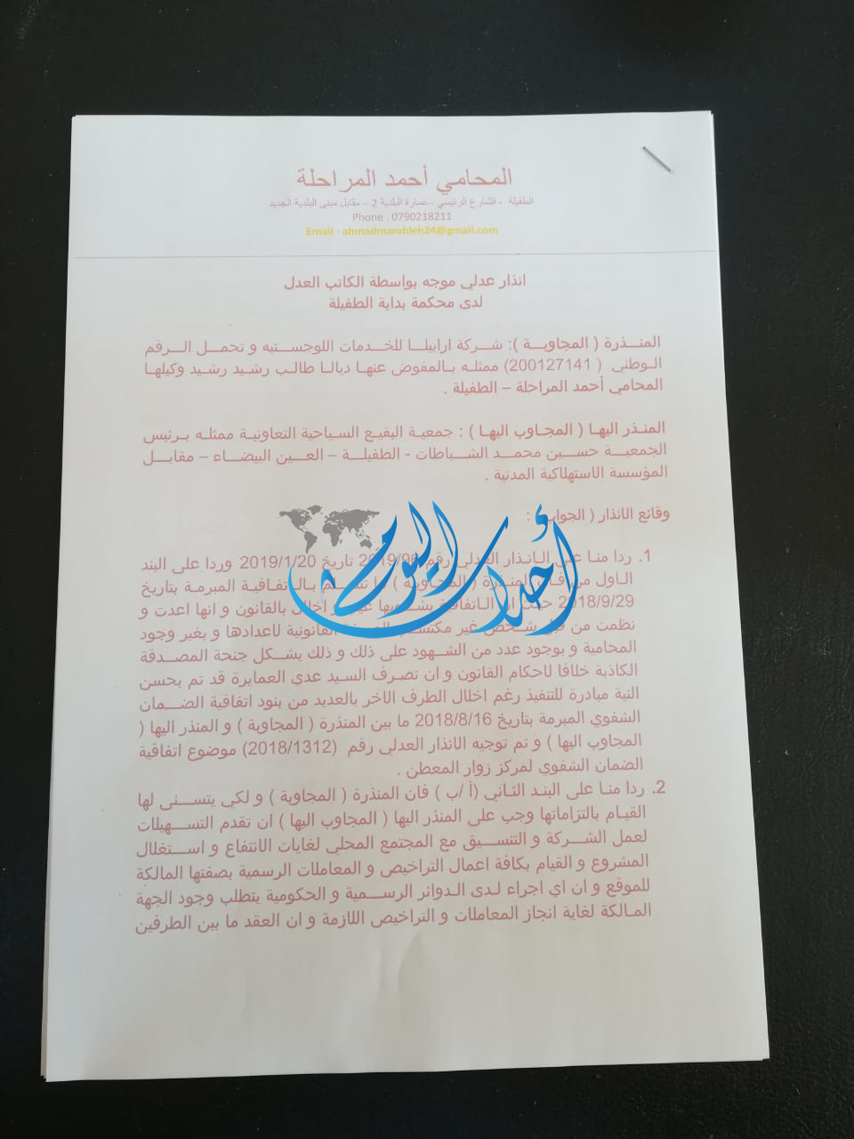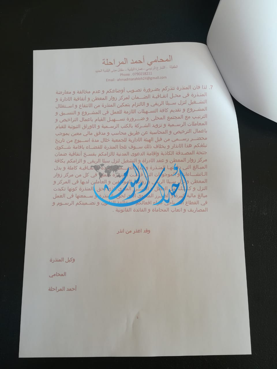 ومن جهة أخرى يحق لنا قانونيا الحصول على تمديد زمني لحين متابعة التسجيل والحصول على الموافقات الرسمية من وزارة السياحة والآثار التي ما زالت تلوح بإغلاق الموقع مع بداية الموسم السياحي عوضاً عن تقديم المساعدة لتسهيل مهمتنا في المساهمه الفاعلة في تشغيل المجتمع المحلي وتطوير سياحيا.