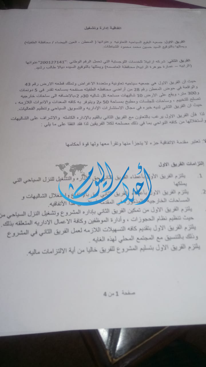 بيان صادر عن شركة أرابيلا (المسؤولة عن إدارة وتشغيل نزل سيلا الريفي) محافظة الطفيلة - قرية المعطن.