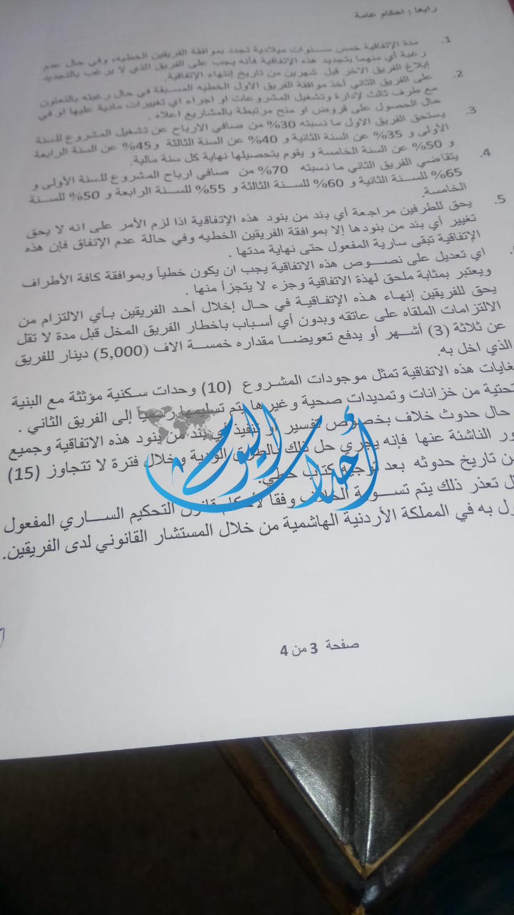 وأضاف العمايرة لـ "أحداث اليوم" أن الجهة الموقع معها وهي "جمعية البقيع التعاونية" قامت بعرقلة اقامة المشروع ورفضت إعطاء الشركة أي أوراق لإستكمال التراخيص بعدما شعرت أن هناك عائداً مادياً من المشروع.