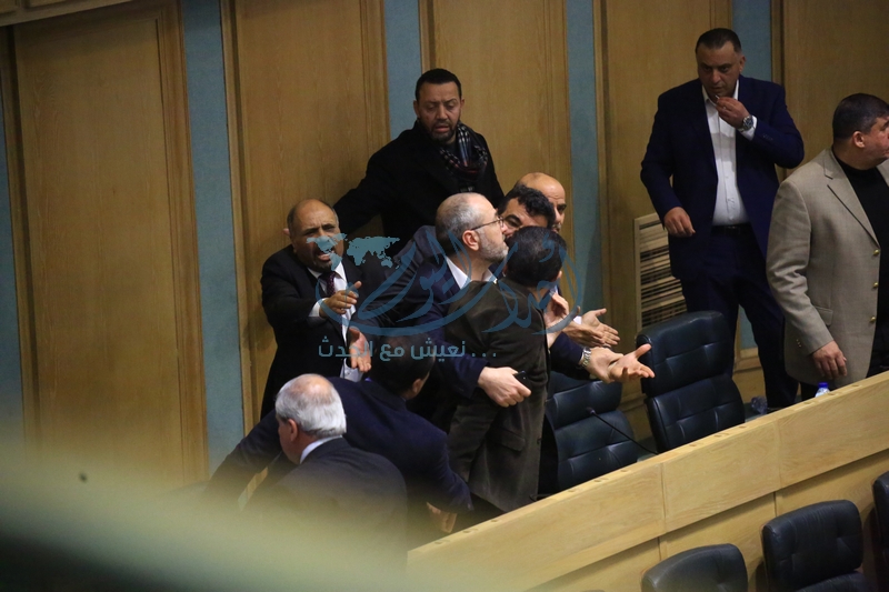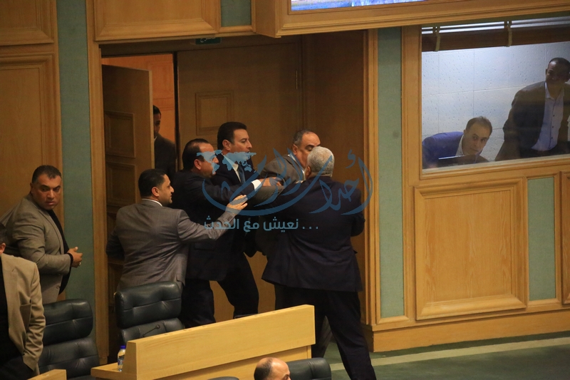 وكان الفناطسة اعترض على عودة هديب للجلوس تحت القبة بعد ان خرج اثر استفزازه للمجلس بتصريحاته حول الوصاية الهاشمية وصفقة القرن حيث قال الفناطسة "اذا بيظل هديب في الجلسة رح اضربه" ، مما دفع الاخير بضربه بعبوات المياه واندلعت بينهما مشاجرة تدخل النواب لفضها .