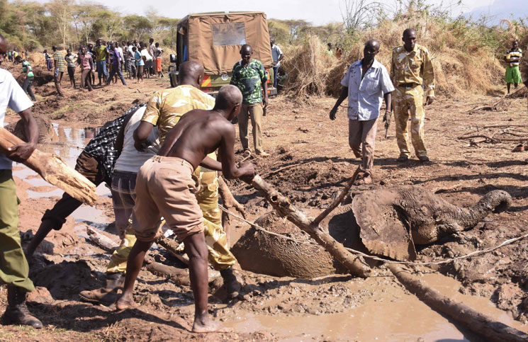 أحداث اليوم - انقاذ ثلاثة فيلة عالقة في طين عميق على شواطئ بحيرة كابناروك الموسمية، التي تقع عند قاعدة وادي كيريو، وهي جزء من النظام الإيكولوجي لوادي كينيا المتصدع في مقاطعة بارينغو