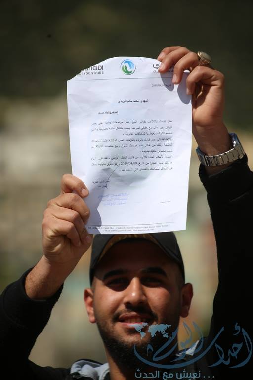 وأكد عيسى الجيزاوي انه قد بدء بمقاطعة شركة البان الجنيدي "لانها سرحت اكثر من مئة عامل ومعيلين لأسرهم لاعتراضهم على سياسة الشركة المجحفة بحقهم مقاطع لألبان الجنيدي"