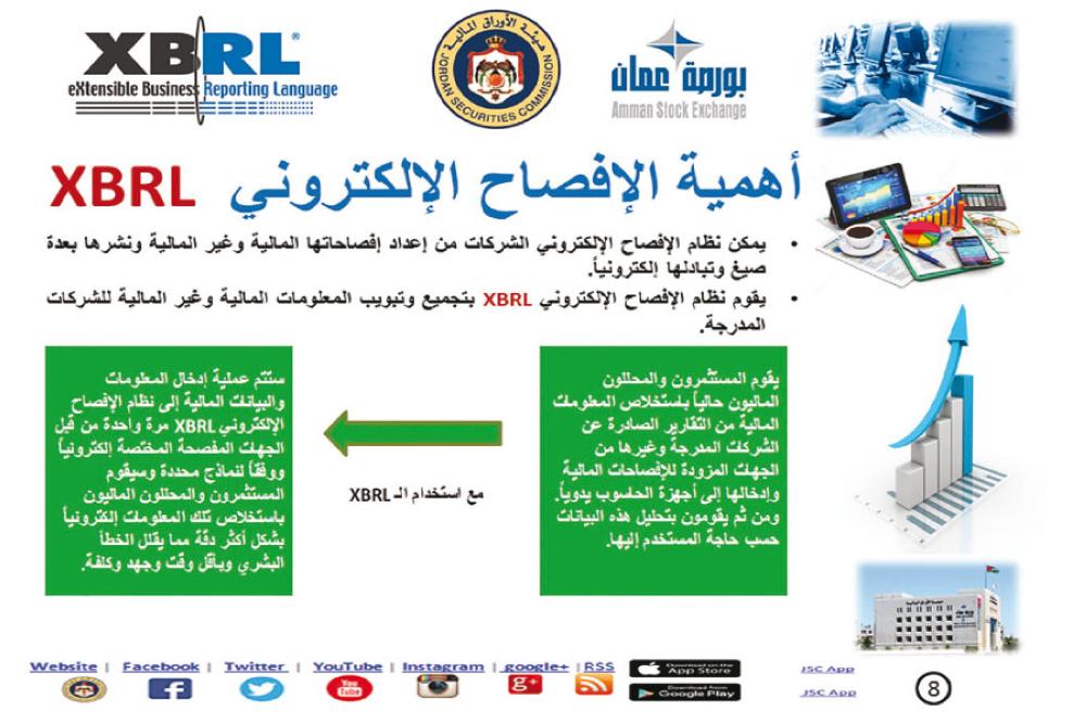 ويُعَد نظام XBRL منصة إلكترونية تستطيع الشركات من خلالها الحصول على العديد من الخدمات المقدمة من قبل هيئة الأوراق المالية وبورصة عمان بشكل إلكتروني إلى جانب تزويد الهيئة والبورصة بكافة الإفصاحات المالية وغير المالية.