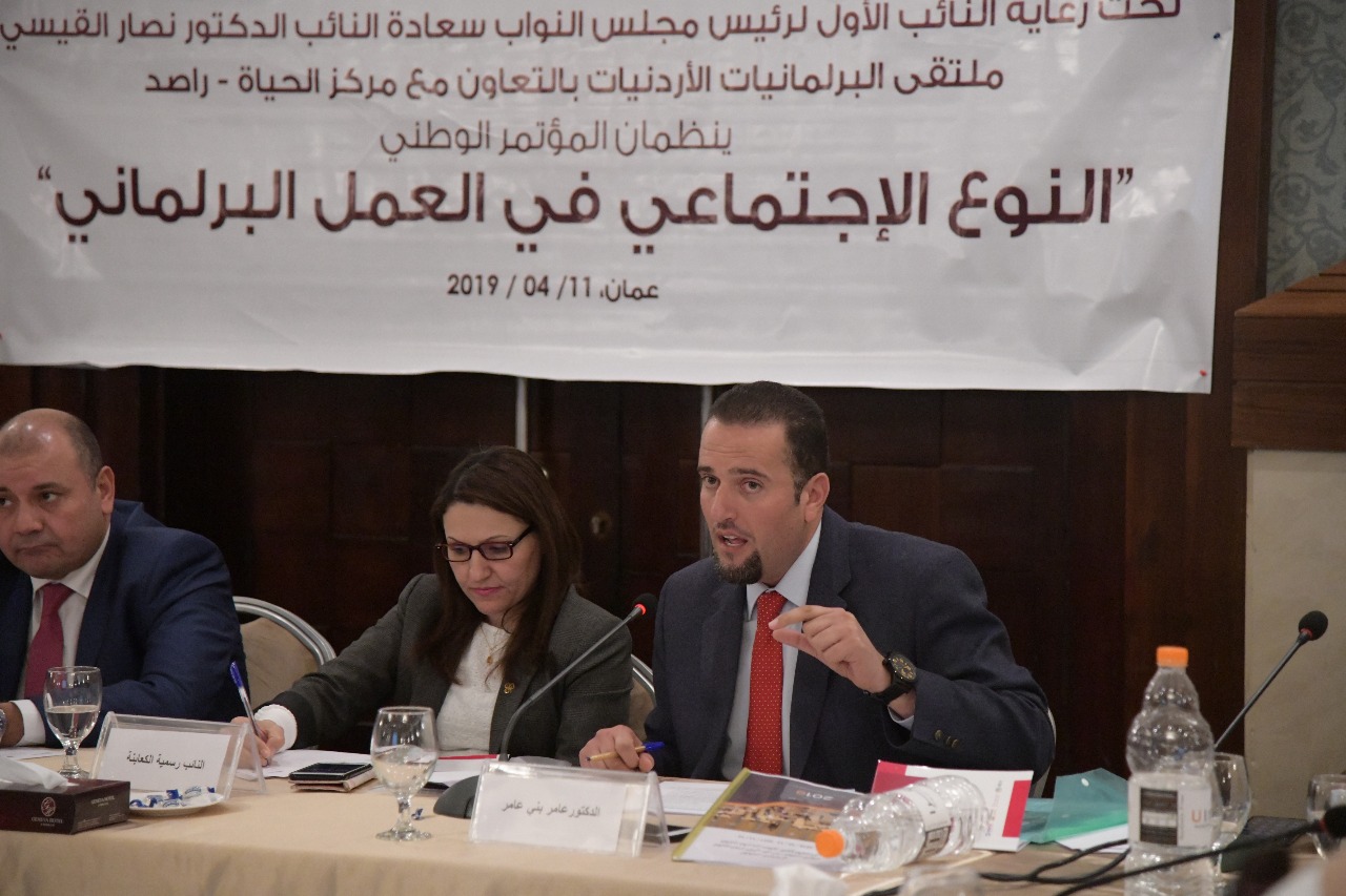 وتحدث القيسي عن إيلاء مجلس النواب اهتماماً بالغاً بالنوع الاجتماعي على المستوى التشريعي والدليل على ذلك التشريعات التي أقرها مجلس النواب الثامن عشر، ومنها قانون حقوق الأشخاص ذوي الإعاقة لسنة 2017، وقانون التقاعد المدني المعدل لسنة 2017، وقانون العقوبات المعدل لسنة 2017، وقانون الحماية من العنف الاسري لسنة 2017، وأكد في نهاية حديثه على الانفتاح المستمر تجاه أي جهد وطني يمكن أن يساهم في تعزيز وتطوير العمل البرلماني في الأردن.