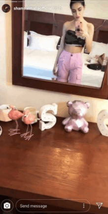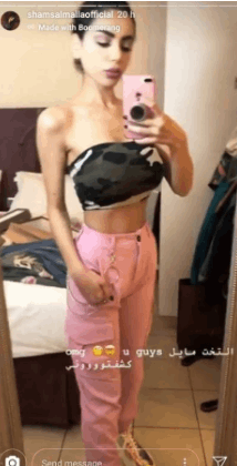 ونشرت على حسابها في موقع "إنستغرام" عبر خاصية "ستوري"، صوراً لها داخل غرفة النوم، مرتدية توب قصيرة بلا أكتاف وتكشف بطنها، بغرض نفي اتهامات وجهت لها حول استخدامها برنامج "فوتوشوب"، لتنحيف خصرها.