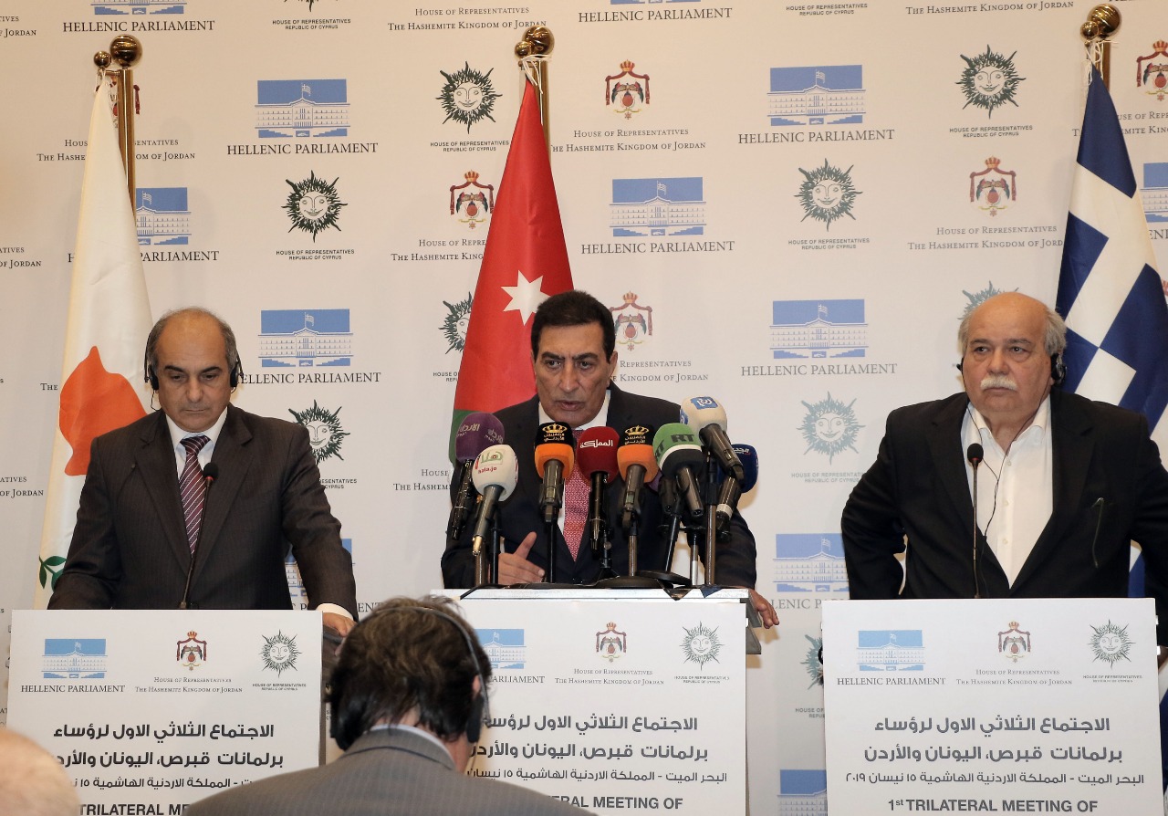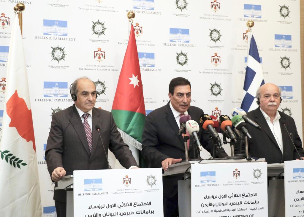 أحداث اليوم - اكد رؤساء برلمانات الأردن واليونان وقبرص على مخرجات القمة الثلاثية التي جمعت جلالة الملك عبدالله الثاني والرئيسين اليوناني والقبرصي امس الاحد، والداعية إلى توسيع التعاون بين البلدان الثلاثة في مختلف المجالات.