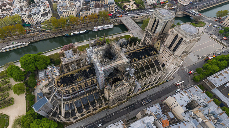 أظهرت صورة جوية بانورامية حجم الأذى الذي لحق بأشهر معالم باريس التاريخية، كاتدرائية نوتردام، نتيجة الحريق الهائل الذي تعرضت له، في 15 أبريل الجاري.