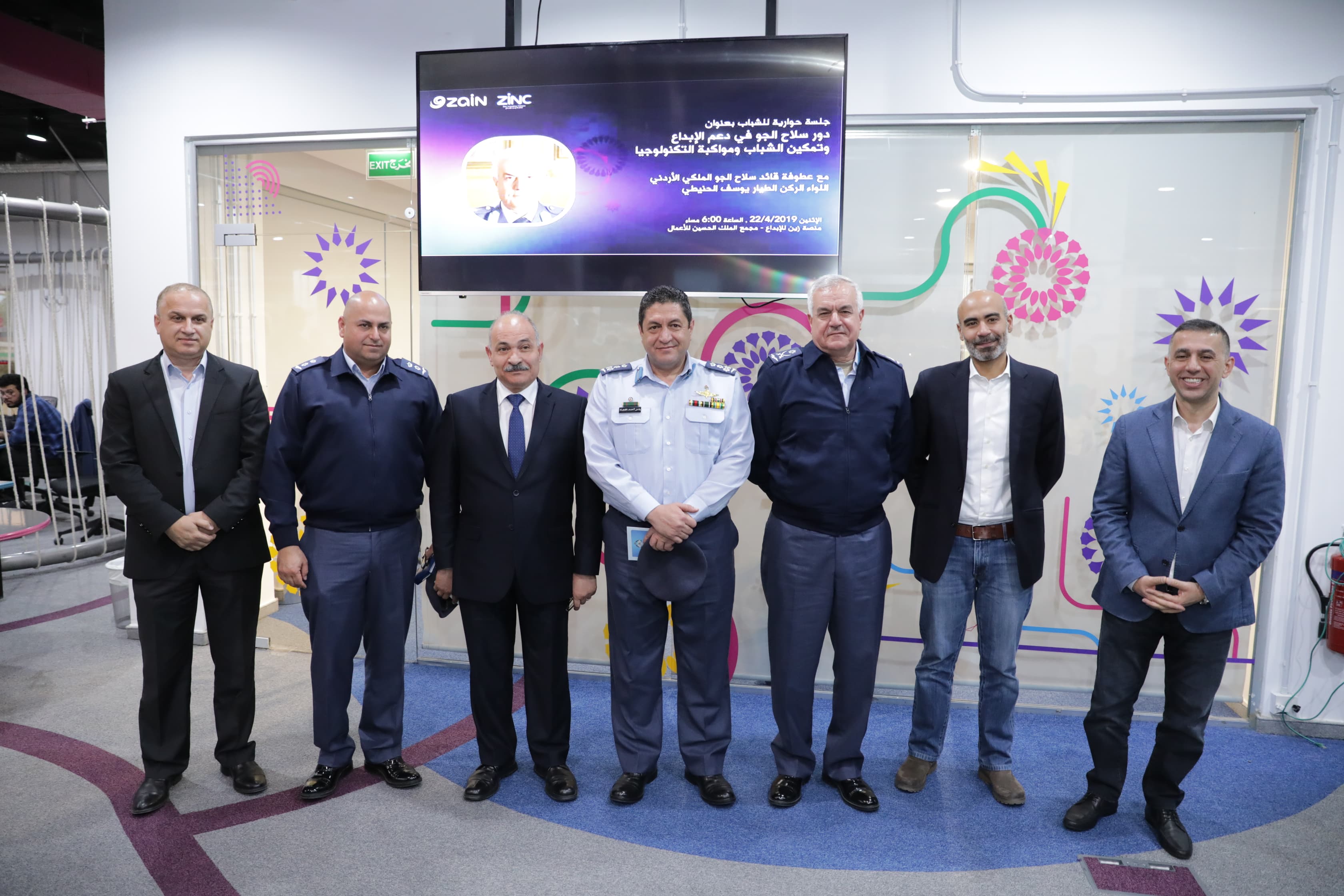 وأكد الحنيطي خلال جلسة جمعته بالشباب في منصة زين للإبداع (ZINC)، بحضور الرئيس التنفيذي لشركة زين الأردن فهد الجاسم، على أن أبواب سلاح الجو مفتوحة أمام الشباب الأردني المبدع، داعياً الشباب إلى تقديم أفكارهم الخلاقة التي من الممكن أن تخدم عمل سلاح الجو، كما استعرض المجالات التي يمكن إفادة الشباب من خلالها كالبرامج التدريبية التي يوفرها سلاح الجو لطلبة الجامعات، والدورات التي تعقد من خلال إدارة الاتصالات، داعياً الشباب إلى الاستفادة مما يوفره مركز الحاسب الإلكتروني ومديرية الاتصالات في سلاح الجو، حيث تم تقديم إيجاز عن الدورات من قبل العميد ياسر القضاة؛ مدير إدارة الاتصالات في سلاح الجو الملكي الأردني.
