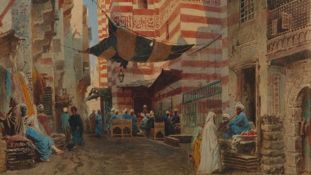 "يسعى كل امرء في النهار قدر طاقته كي ينهي عمله في أسرع وقت، ليخصص بضع ساعات للنوم، فترى الفلاح راقدا تحت نخلة بعد أن أنهى في فترة الصباح عمله، وترى التاجر يرقد في دكانه، والعامة ممدين في الشوارع بجوار جدران مساكنهم، بينما الغني راقدا بالمثل، نعسان ينتظر على أريكته الفاخرة الفترة التي تسبق غروب الشمس، وأخيرا تأتي الساعة التي طال انتظارها، فينهضون على عجل ويهرع كل امرء للحصول على مكانه."