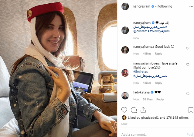 أحداث اليوم - نشرت الفنانة نانسي عجرم صورة طريفة لها عبر "انستغرام" أثناء وجودها على متن الطائرة المتجهة لدبي لحضور حلقة جديدة من برنامج "مجموعة إنسان"، الذي يقدمه الإعلامي علي العلياني.
