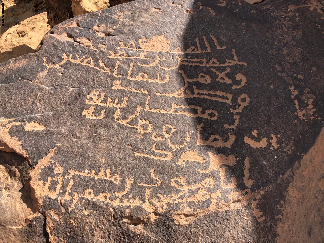 وأشار الشمري إلى أن النقش تواجد على طرق القوافل القديمة، وأنه مكتوب بالخط العربي غير المنقط، أو ما يسمى بـ"الخط الإسلامي المبكر".