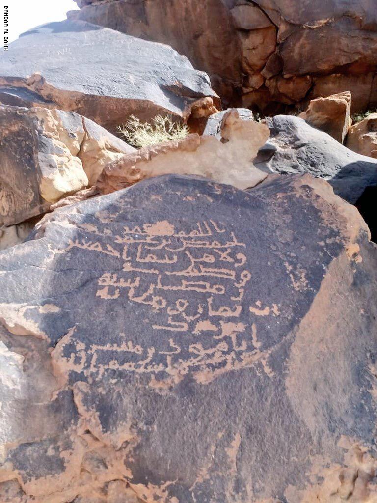 أحداث اليوم - خلال إحدى جولاته اليومية والميدانية، في محافظة تيماء في المملكة العربية السعودية، وجد السعودي بندر عقيل الغيث الشمري نقشاً إسلامياً على إحدى الصخور، يعود إلى أكثر من ألف عام!