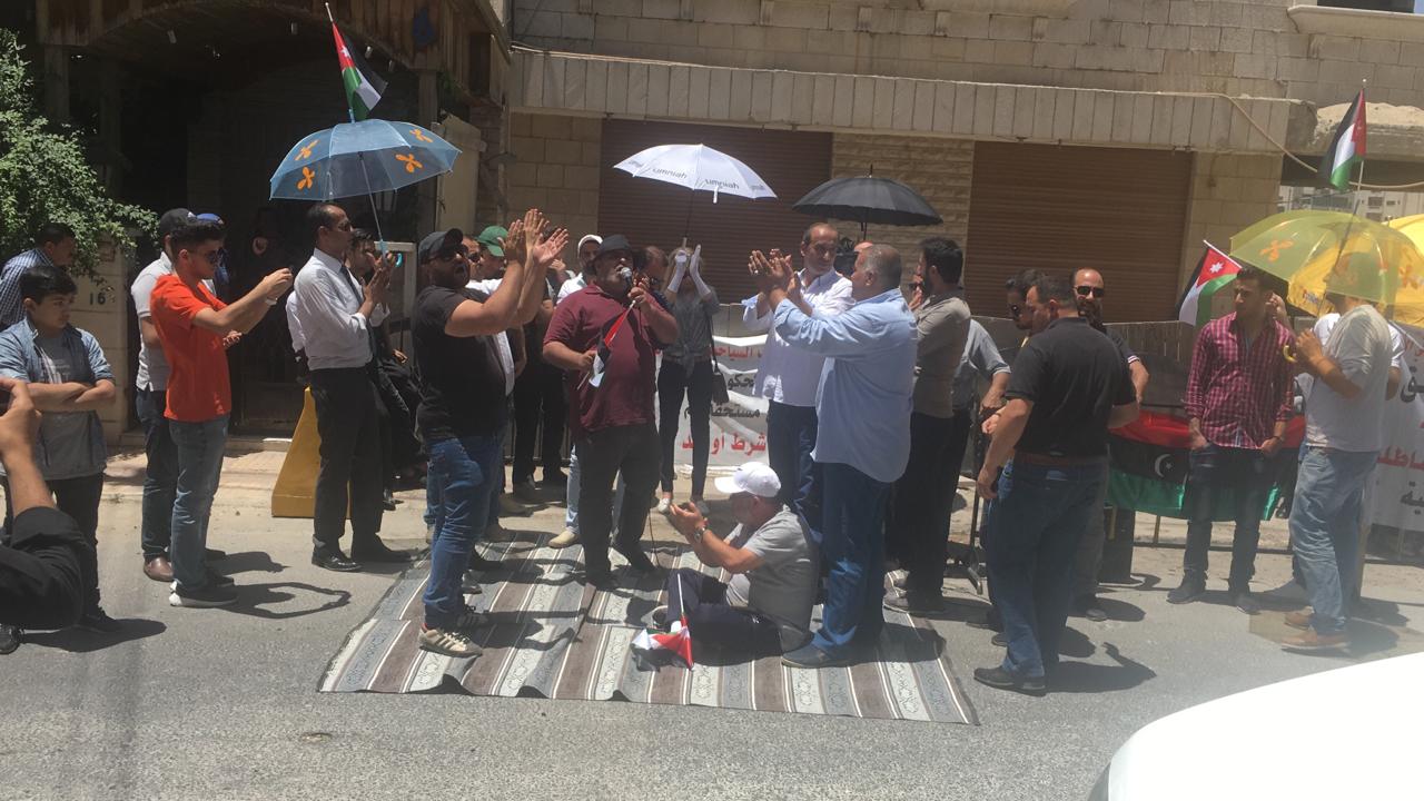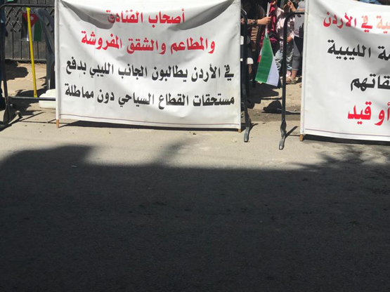 أحداث اليوم - شفاء القضاة - يستمر العشرات من أصحاب الفنادق والمطاعم باعتصامهم أمام سفارة ليبيا للشهر الخامس على التوالي؛ للمطالبة بمستحقاتهم البالغة 60 مليونًا من الحكومة الليبية.