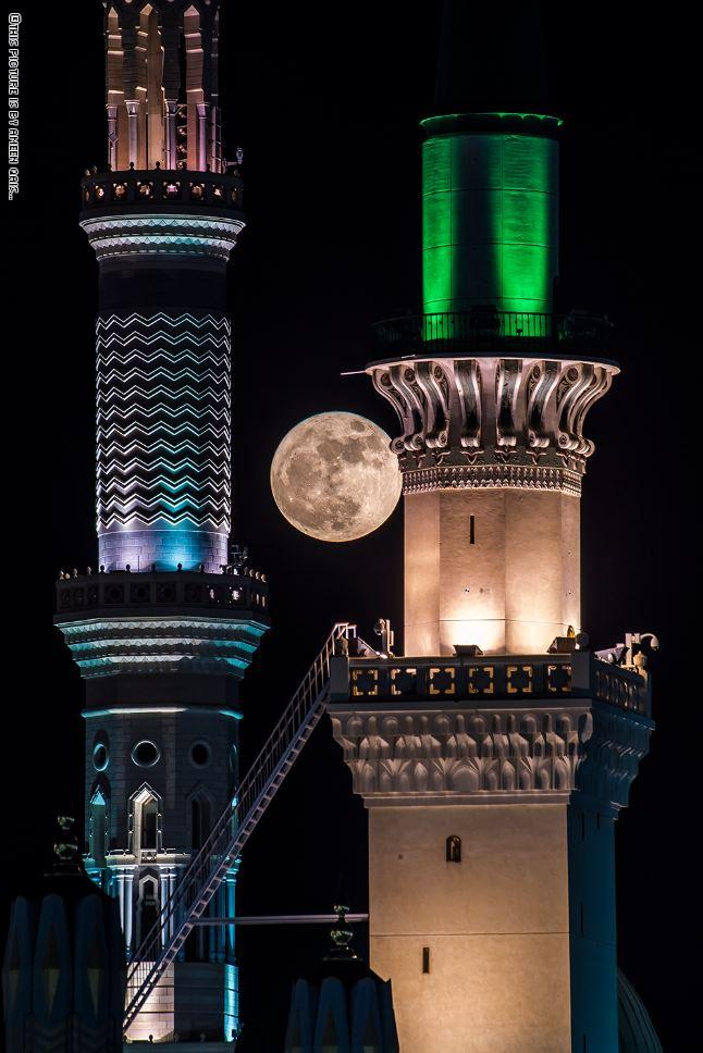 ويشتمل الكتاب على صورة أخاذة التقطت في عام 2016، وتُظهر القمر العملاق وهو يتوسط منارتي المسجد النبوي.