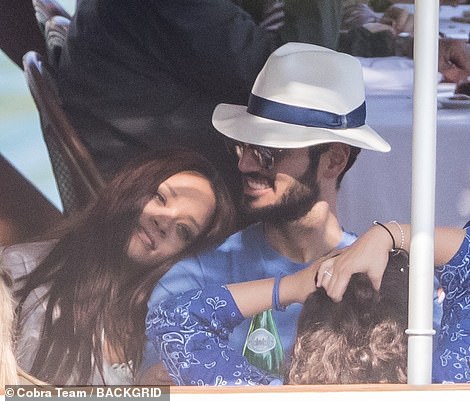 وارتدت ريهانا فستاناً قصيراً أبيض اللون، ورصدتها الكاميرات تنظر برومانسية شديدة إلى جميل.