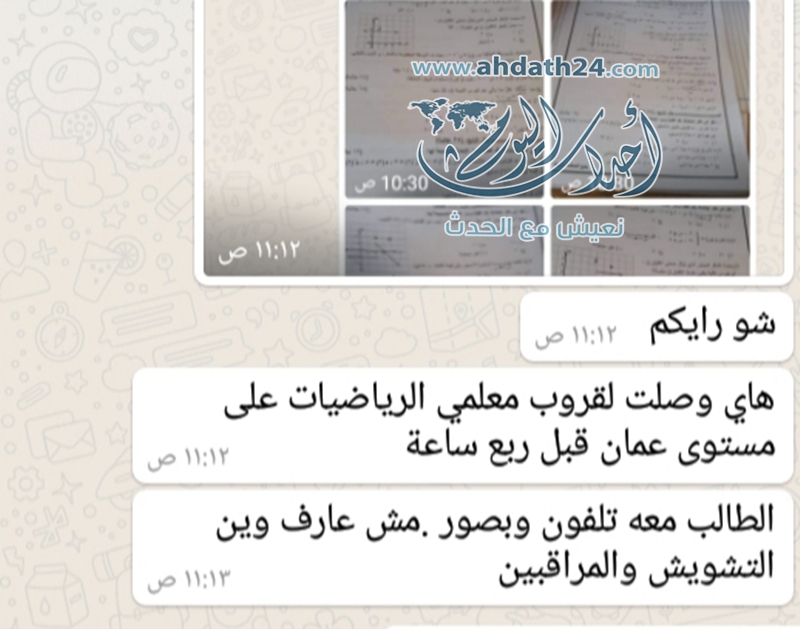 شفاء القضاة - تداول مواطنون عبر رسائل تطبيق "الواتساب" صورًا لأوراق امتحان الرياضيات لطلبة الثانويّة العامة" التوجيهي"الذي عقد صباح اليوم والتي أرسلت من خلال طلبة لخارج القاعات بواسطة الهاتف النقال.