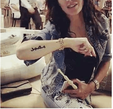 أحداث اليوم - تداول محبو الممثلة نادين الراسي، صورة جديدة ظهرت فيها تضع وشماً على يدها بإسم النبي محمد عليه الصلاة والسلام.