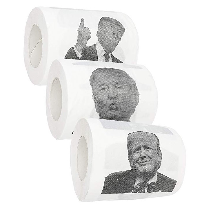 وتوفر شركة "أمازون" لزبائنها دمى عارية على شكل ترامب، مستوحاة من الشخصيات الكرتونية الشهيرة "ترولز"، والتي ذاع صيتها بين الأطفال والبالغين على حد سواء، بسبب طول شعرها، فضلا عن ورق تواليت مطبوع عليها وجه ترامب، و"حفاضات".