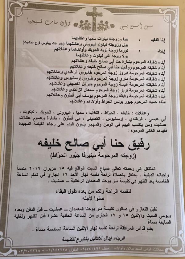 أحداث اليوم - نعى الاعلامي اللبناني الكبير طوني خليفة عمه الذي توفي اول من امس..