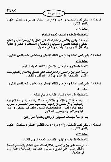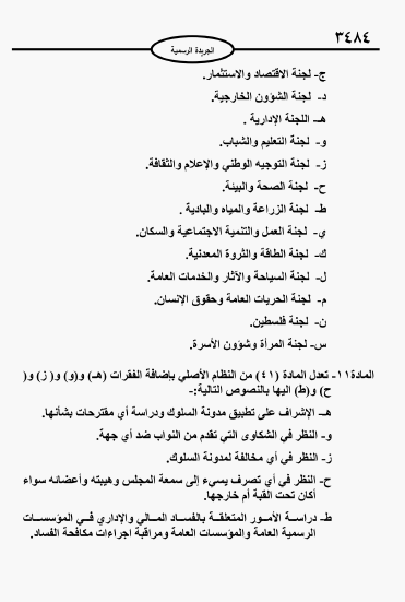 وألغى المجلس لجان تقصي الحقائق والنظام والسلوك النيابية كما تم دمج لجنتي الريف والبادية والزراعه في لجنة واحدة وايضا دمج لجنتي الخدمات العامه والسياحة في لجنة واحدة.