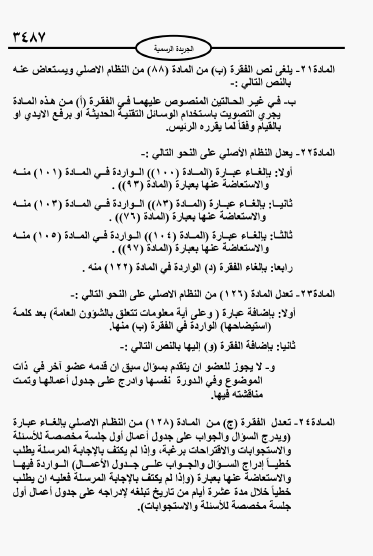 وأقر المجلس نصا لا يسمح للنائب بتوجيه سؤال سبق أن تم توجيهه من نائب آخر في نفس الدورة.