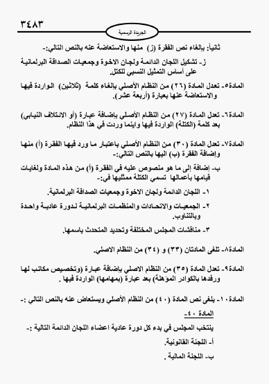 ومنحت التعديلات الحق للمكتب التنفيذي للمجلس العمل على تشكيل اللجان النيابية ولجان الصداقة وفق مبدا التمثيل النسبي للكتل.