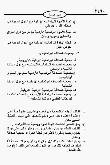كما أقر مادة متعلقة بتشكيل لجان الأخوة والصداقة البرلمانية كما أقر المجلس تشكيل لجنة أخوة برلمانية أردنية فلسطينية بناء على اقتراح من النائب خليل عطية.