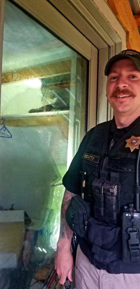فقام العناصر بالضرب على النافذة لإيقاظ حيوان الثدييات الكبير الا أنه كان يرفض المغادرة.
