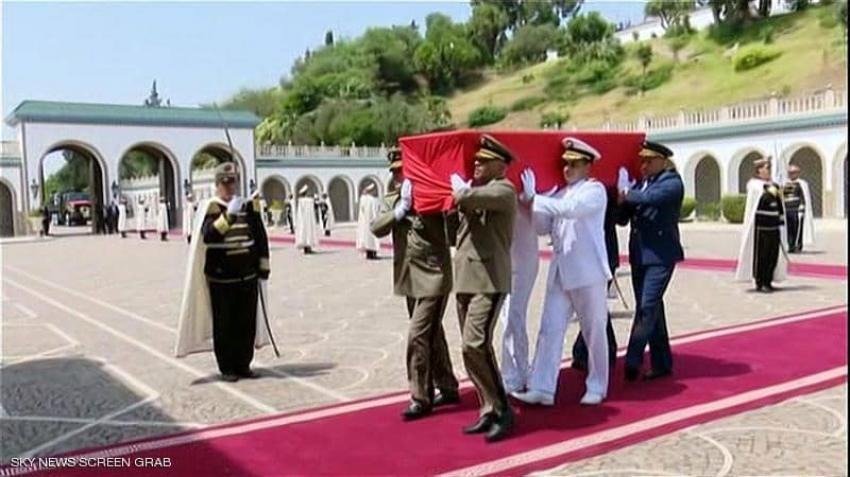 وانطلقت الجنازة من قصر قرطاج بحضور مسؤولين كبار من دول عدة، من بينهم الرئيس الجزائري المؤقت عبد القادر بن صالح والرئيس الفلسطيني محمود عباس والرئيس الفرنسي إيمانويل ماكرون، بالإضافة إلى مسؤولين كبار من عدة دول عربية وأوروبية وأفريقية.