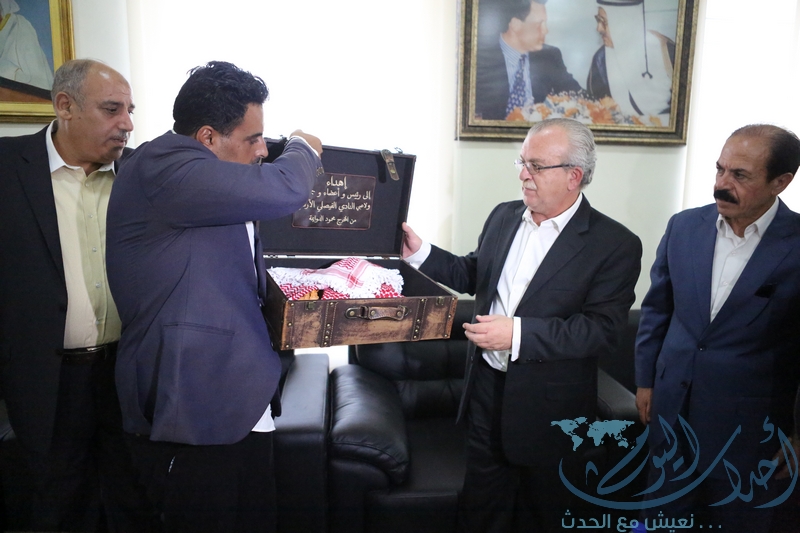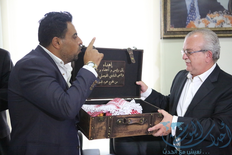 وكان في استقبال الجاهة رئيس النادي الفيصلي الشيخ بكر سلطان العدوان وأعضاء مجلس إدارة النادي الفيصلي وأمين عام اتحاد الكرة السابق فادي زريقات وعدد من الوجهاء ومحبي النادي الفيصلي.