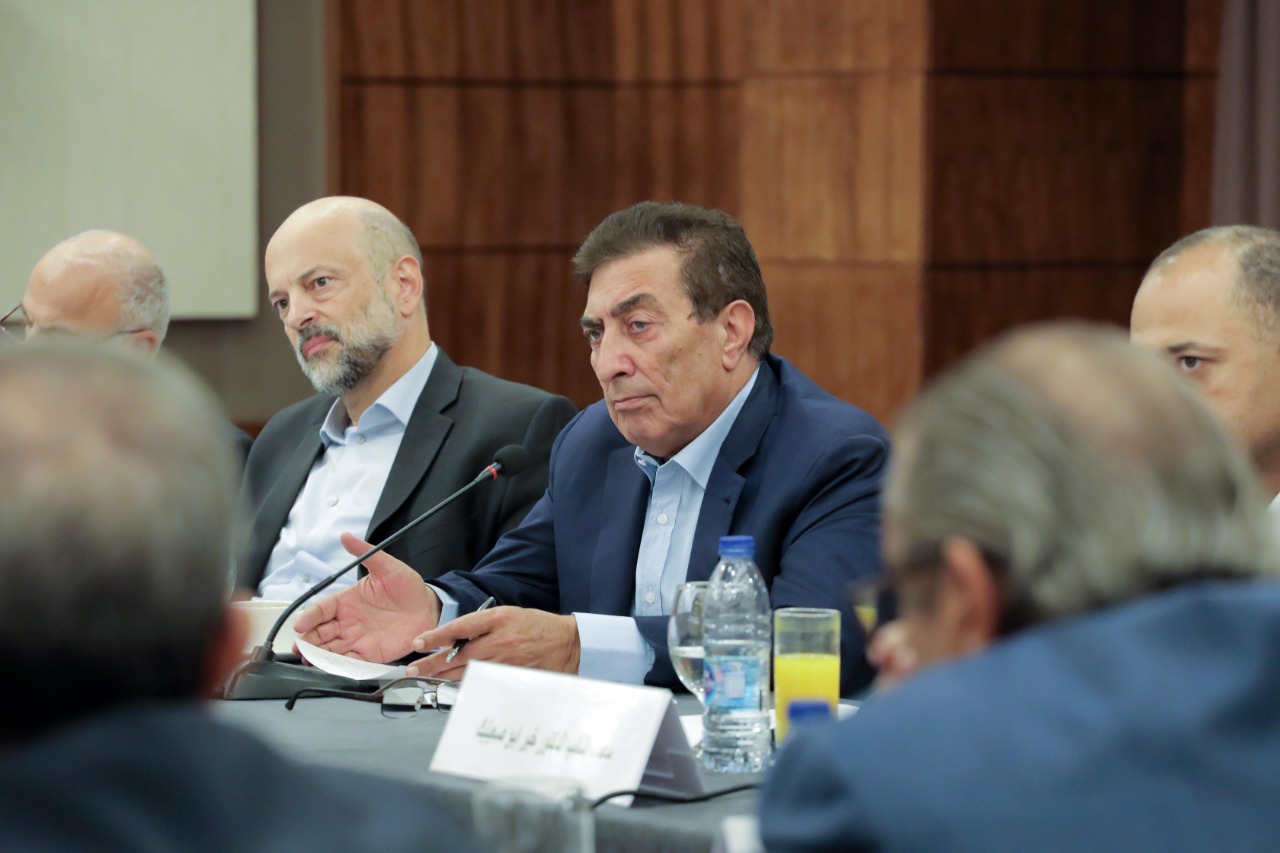 وحضر اللقاء رؤساء اللجان النيابية الاقتصاد و الاستثمار الدكتور خير ابو صعيليك و المالية الدكتور خالد البكار و النقل خالد ابو حسان و النواب موسى الوحش و رياض العزام و عمر قراقيش و رجا الصرايرة و الاعيان نائل الكباريتي وعيسى مراد وزياد الحمصي ووزراء الداخلية سلامة حماد والمالية عز الدين كناكرية والصناعة والتجارة والتموين طارق الحموري والاقتصاد الرقمي والريادة مثنى الغرايبة و الطاقة و الثروة المعدنية هالة زواتي و التخطيط و التعاون الدولي محمد العسعس و النقل انمار الخصاونة و الزراعة و البيئة إبراهيم الشحاحدة و الدولة لشؤون الاعلام جمانة غنيمات و السياحة و الاثار مجد شويكة و محافظ البنك المركزي زياد فريز و امين عمان يوسف الشواربة و مدير عام دائرة الجمارك الأردنية عبد المجيد الرحامنة و مدير عام دائرة ضريبة الدخل و المبيعات حسام أبو علي و رئيس هيئة الاستثمار خالد الوزني و مدير المؤسسة العامة للغذاء و الدواء هايل عبيدات الى تحديد التحديات القابعة امام القطاعات الصناعية و السياحية و الزراعية و سوق عمان المالي وممثلين عن غرف صناعة و تجارة و عدد من المستثمرين من القطاعين العام و الخاص و عدد من النقباء المعنيين.