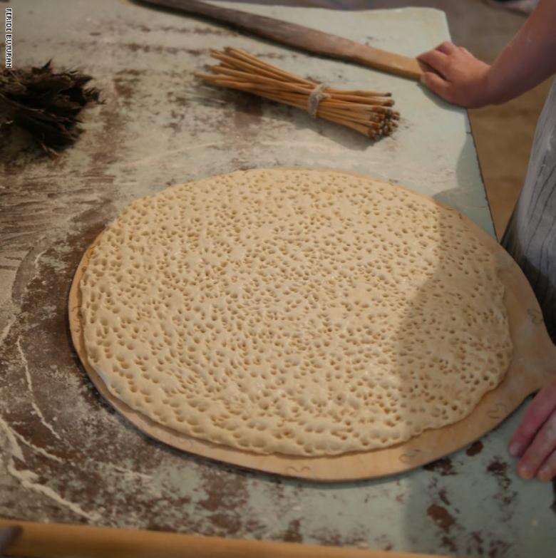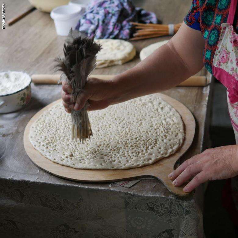 وقالت بويوران إنه بعد تحضير ورقّ العجين لجعله مسطحاً، يتم الضغط عليه بأطراف ريش طائر الأوز، أو مجموعة من الأغصان.