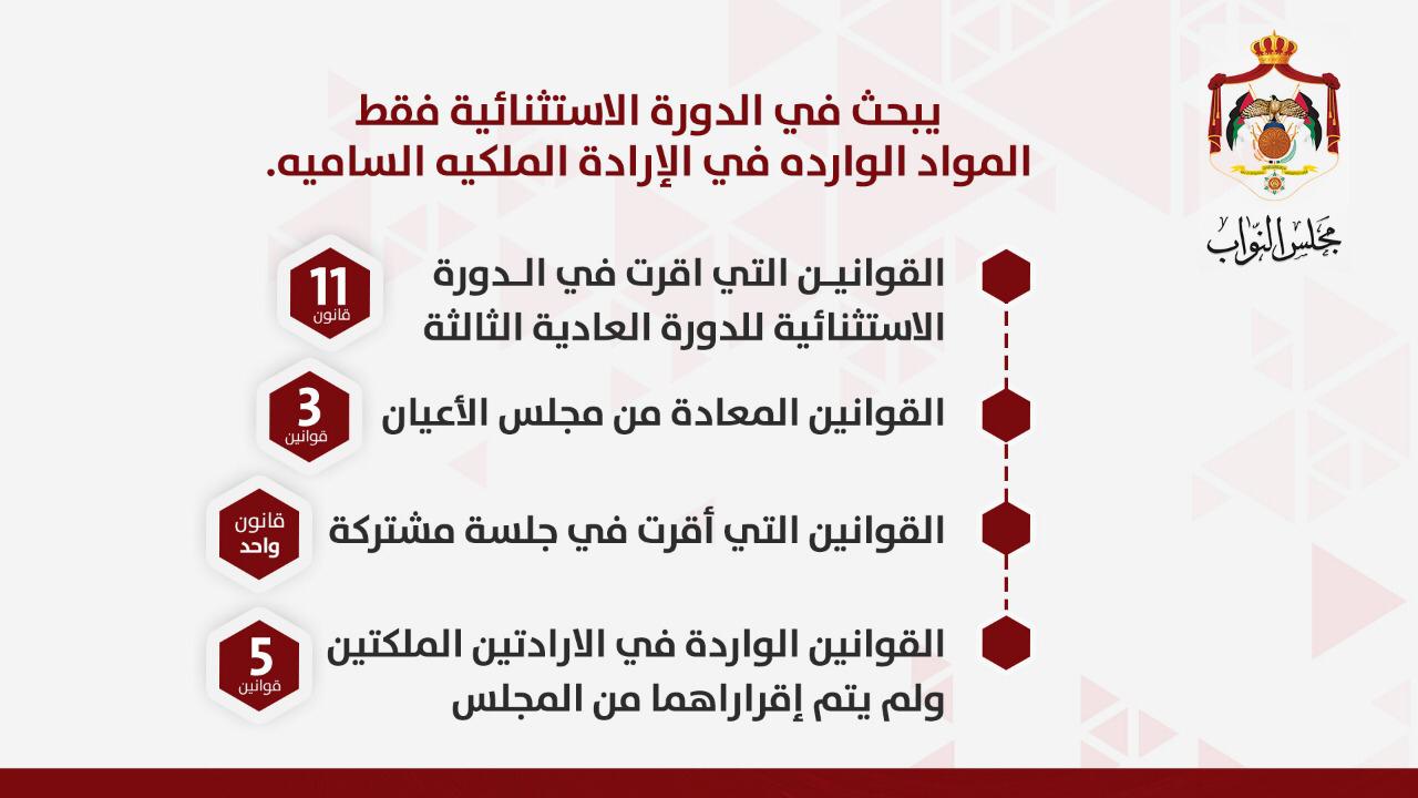 أحداث اليوم - اعلن مجلس النواب عن ملخص اعماله في الدورة الإستثنائية للدورة العادية الثالثة.