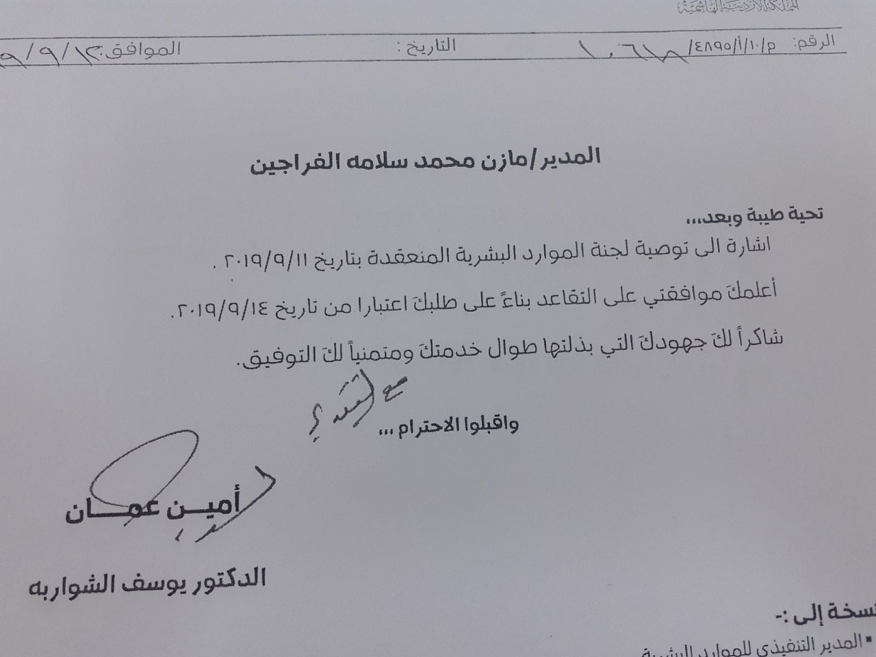 أحداث اليوم - قرر أمين عمّان يوسف الشواربة قبول استقالة مدير المكتب الإعلامي في أمانة عمّان الكبرى مازن فراجين بناء على طلبه.