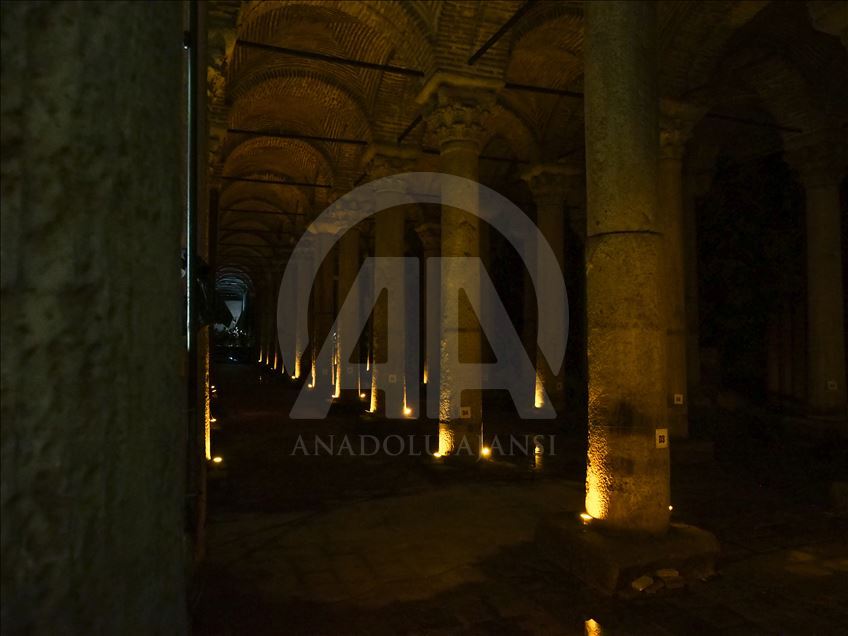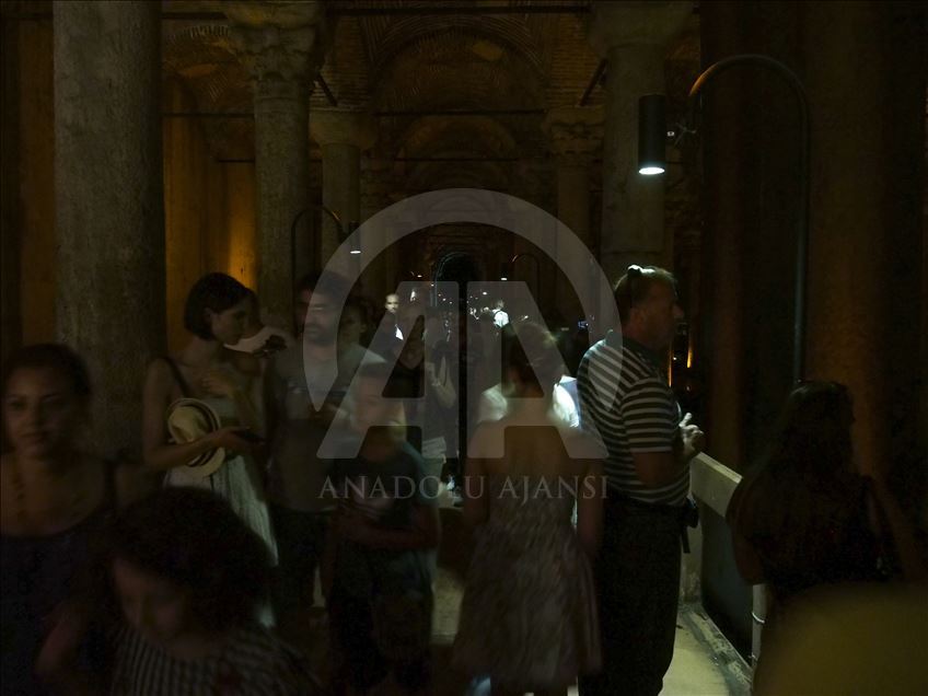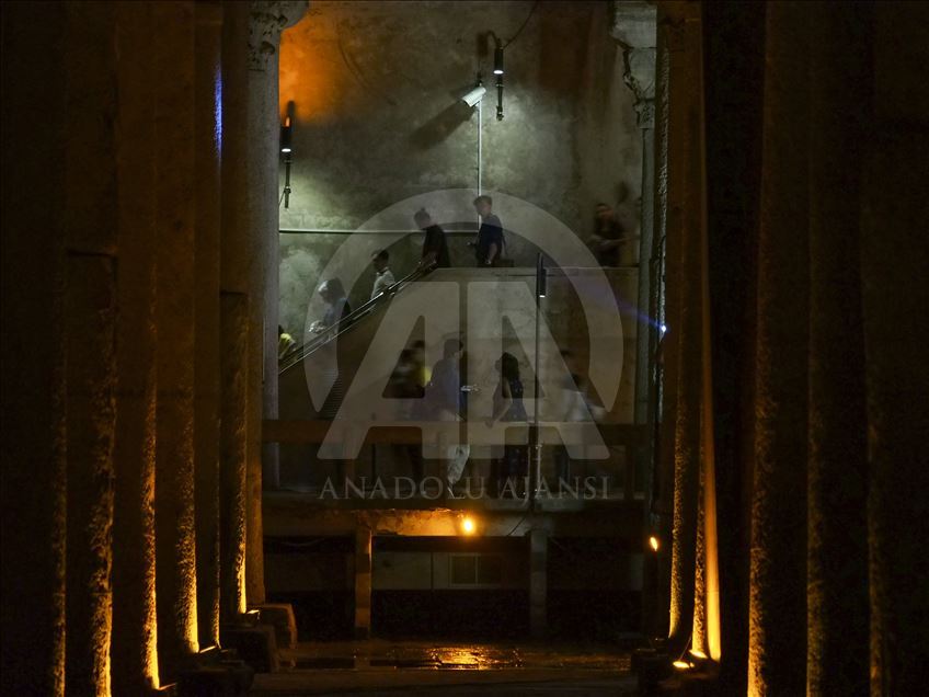 و"القصر الغارق" الواقع قرب متحف آيا صوفيا الشهير على الشق الأوروبي من إسطنبول، يستقبل يوميا مئات الزوّار المحليين والأجانب، فيما يكون أحيانا موضوع حديث أفلام "هوليوود" الشهيرة. (الأناضول)